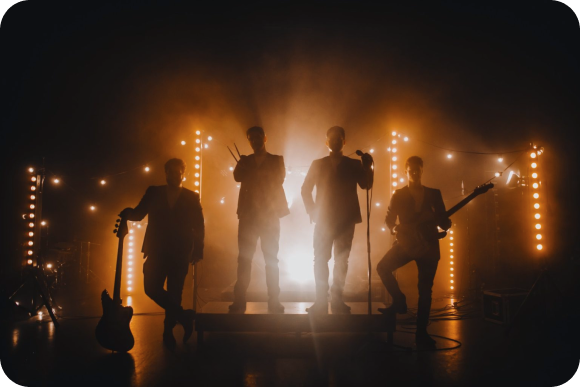 Ofrecemos máxima calidad en cada actuación de la mano de los mejores músicos de jazz, grupos de cuerda exclusivos, cantantes líricos y de música actual, agrupaciones de calidad de música latina y flamenco, y algunas de las principales bandas profesionales de rock, pop o funky.